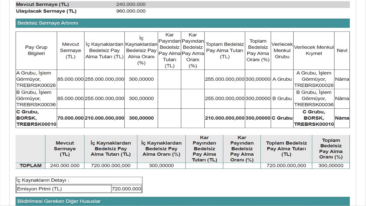 Bor Şeker'in mevcut ödenmiş sermayesi 240 milyon TL düzeyinde bulunuyor. Bu rakam, yüzde 300 oranında artırılacak. 720 milyon liralık sermaye artırım rakamı, firmanın iç kaynaklarından karşılanacak. Böylece şirketin ödenmiş sermayesi 960 milyon liraya erişecek. Firma, 720 milyon liralık rakamı 'emisyon primi' kaleminden karşılayacak.
