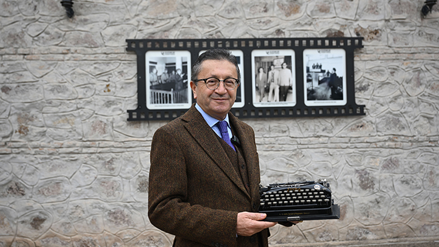 "Onun da uzunca yıllar, 70 yılı aşkın bir süre bizzat kullandığı, kendi yazılarını yazdığı, yakın bir akrabası tarafından öğrenciliğinde hediye edilen bu daktilo, Orta Doğu Teknik Üniversitesinden emaneten 6 aylık bir süre için cezaevi müzemize nakledildi, bir müddet burada izleyicilerle buluşacak. Emeği geçenlere yani bu daktiloyu geçici de olsa müzeye emanet edenlere teşekkür ediyorum."