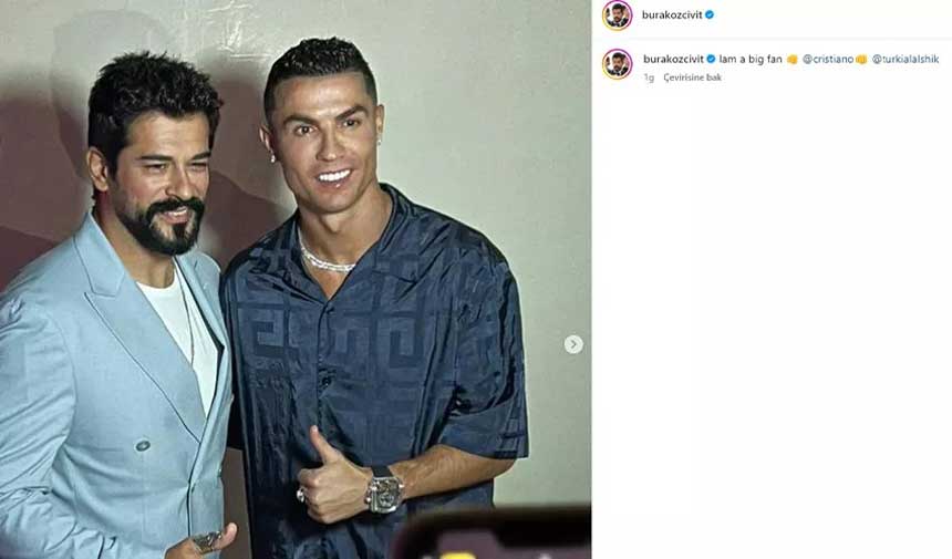 Özel bir davete katılmak üzere Arabistan'a giden yakışıklı oyuncu Burak Özçivit, hayranı olduğu dünyaca ünlü futbolcu Cristiano Ronaldo ile bir paylaşım yaptı.