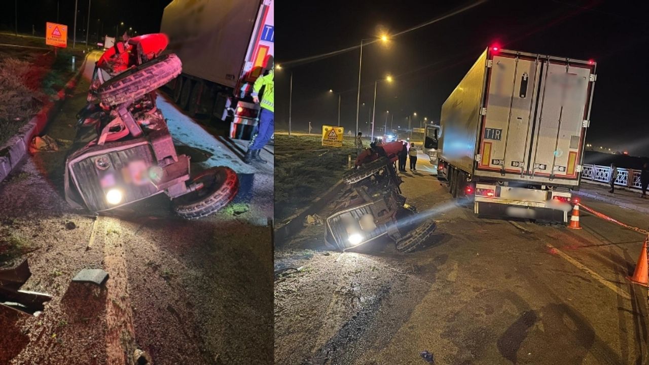 TIR ile Traktör Kavşakta Çarpıştı