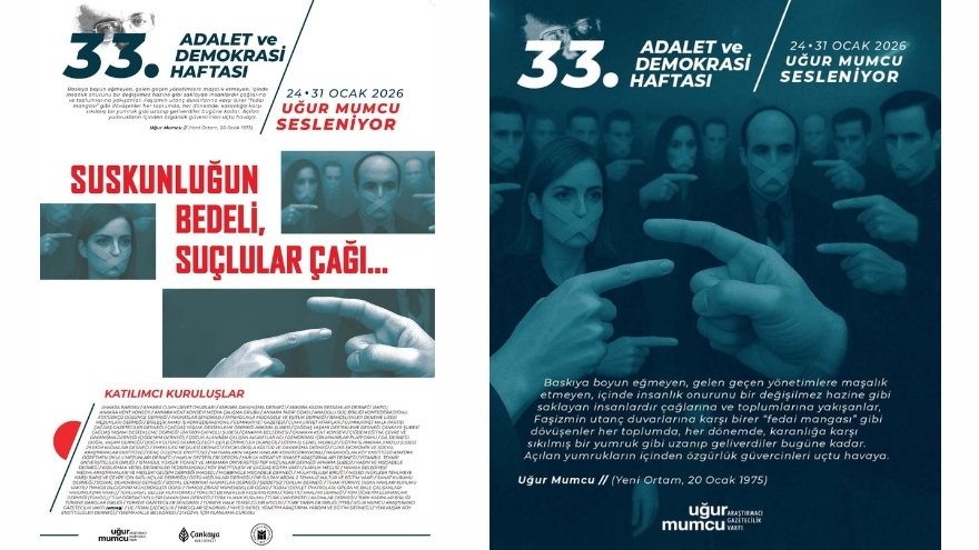 Bu yıl 33’üncüsü düzenlenen Adalet ve Demokrasi Haftası, 'Uğur Mumcu Sesleniyor: Suskunluğun Bedeli, Suçlular Çağı…' temasıyla gerçekleştirilecek.