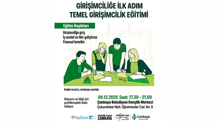 Ankara’da kendi işini kurmak isteyen gençler için yeni bir eğitim fırsatı sunuluyor. Çankaya Belediyesi’nin ev sahipliğinde düzenlenecek 'Temel Girişimcilik Eğitimi', girişimcilik yolculuğuna başlamak isteyen katılımcılara rehberlik edecek.