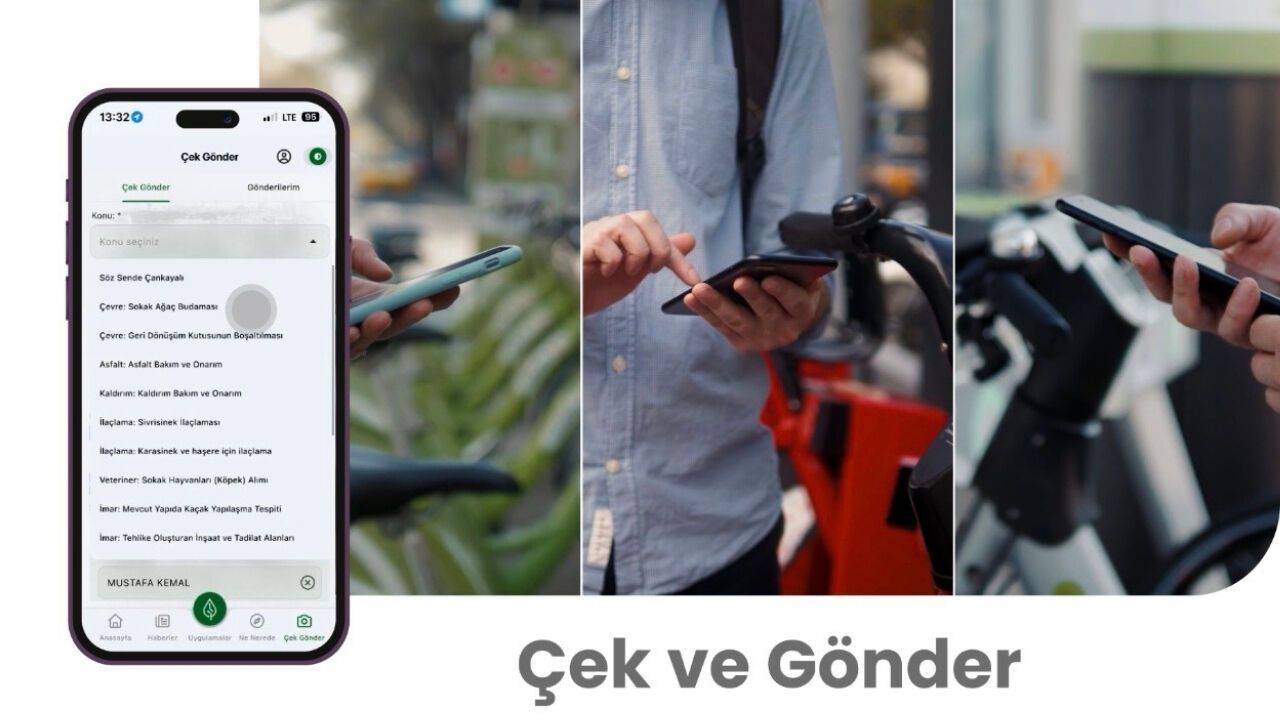 Uygulamada yer alan 'Çek & Gönder' özelliği, ilçe genelinde karşılaşılan sorunların hızlı şekilde belediyeye bildirilmesini sağlıyor. Vatandaşlar gördükleri problemi fotoğraflayarak uygulamaya yükleyebiliyor, taleplerini sisteme kaydettirerek süreci adım adım izleyebiliyor. Bu özellik, katılımcı yerel yönetim anlayışını dijital ortama taşıyor.