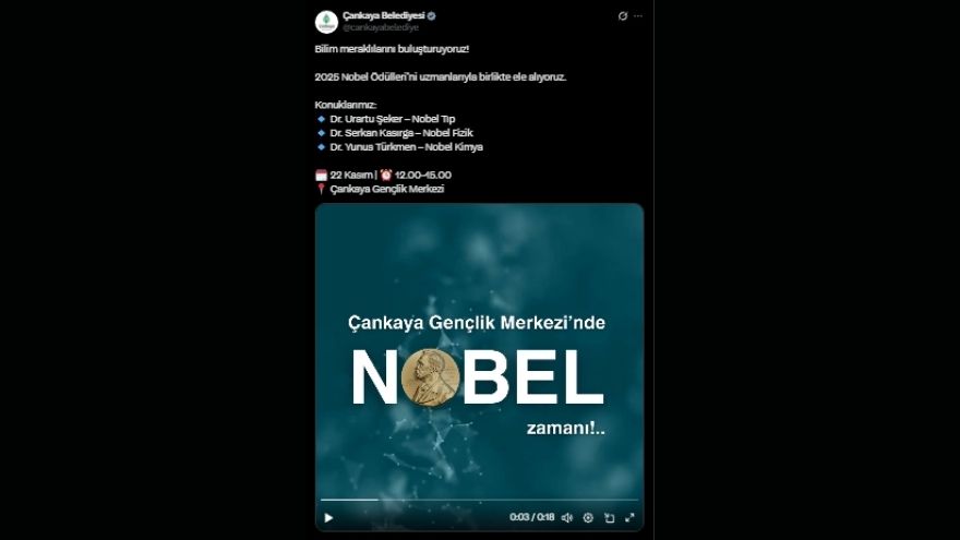 Çankaya Gençlik Merkezi, bilim meraklılarını bir araya getirecek özel bir etkinliğe ev sahipliği yapıyor. 2025 Nobel Ödülleri’nin değerlendirileceği söyleşi, farklı disiplinlerde çalışan üç değerli bilim insanını katılımcılarla buluşturacak.