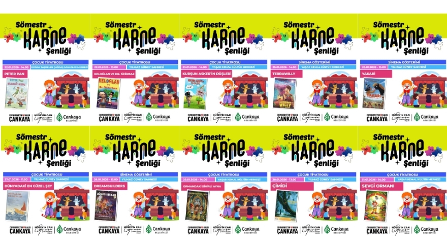 Çankaya Belediyesi, sömestr tatilinde çocukların eğlenceli ve verimli vakit geçirmesi için kapsamlı bir program hazırladı. ‘Sömestr Karne Şenliği’ kapsamında çocuklar, tiyatro sahnelerinde kahkaha dolu anlar yaşayacak, film gösterimlerinde yeni dünyalar keşfedecek ve atölyelerde kendi eserlerini ortaya çıkaracak.