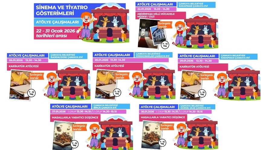 Çankaya’da sömestr tatili artık daha eğlenceli ve renkli… Çocuklar, tiyatro oyunları, film gösterimleri ve yaratıcı atölyelerle dolu dolu iki hafta geçirecek. Üstelik tüm etkinlikler ücretsiz.