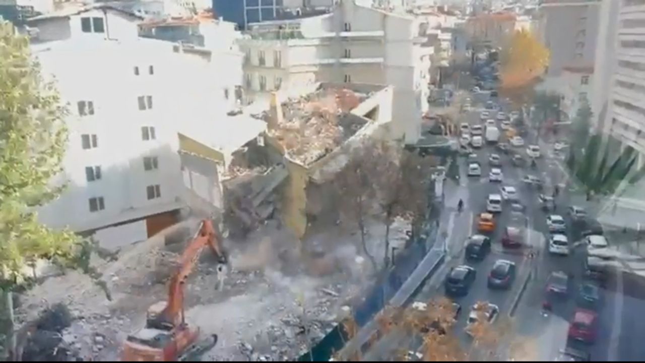 Ankara’nın Çankaya ilçesinde kontrollü yıkım çalışmasının yapıldığı Tunus Caddesi üzerindeki dört katlı bina çöktü.
