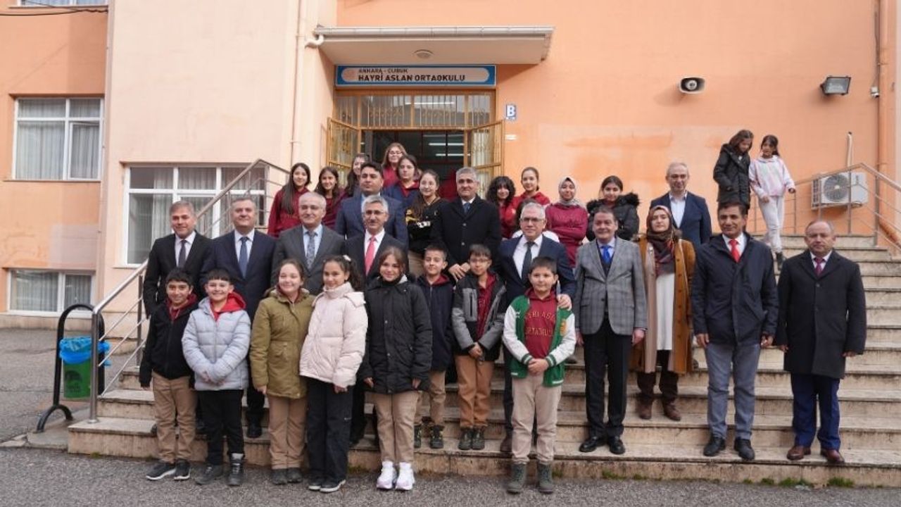 Çubuk Kaymakamı Vehbi Bakır ve Çubuk Belediye Başkanı Baki Demirbaş, Akkuzulu Mahallesi'nde okul ziyareti gerçekleştirdi.