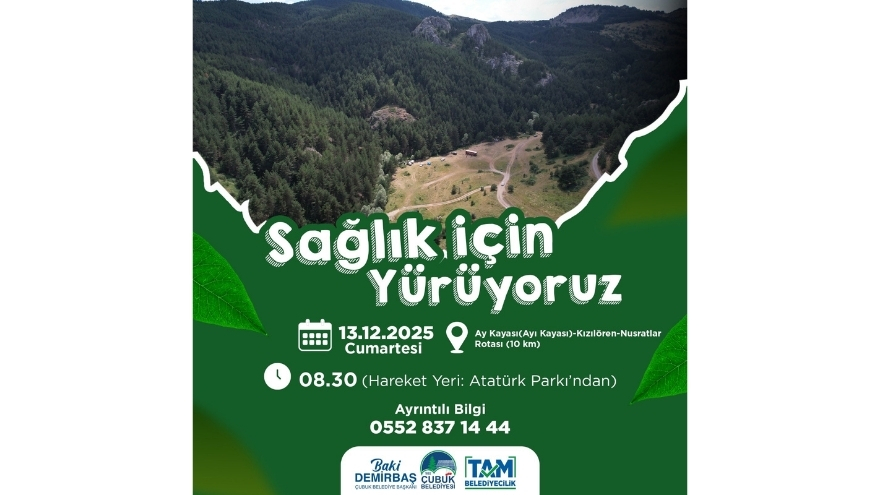 Çubuk Belediyesi, sağlıklı yaşam ve doğa bilincini artırmak amacıyla anlamlı bir etkinliğe daha imza atıyor. 13 Aralık Cumartesi günü yapılacak olan doğa yürüyüşü, sabah 08:30’da Atatürk Parkı’ndan başlayacak.