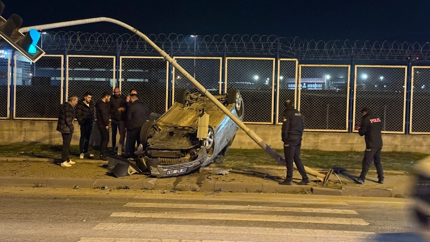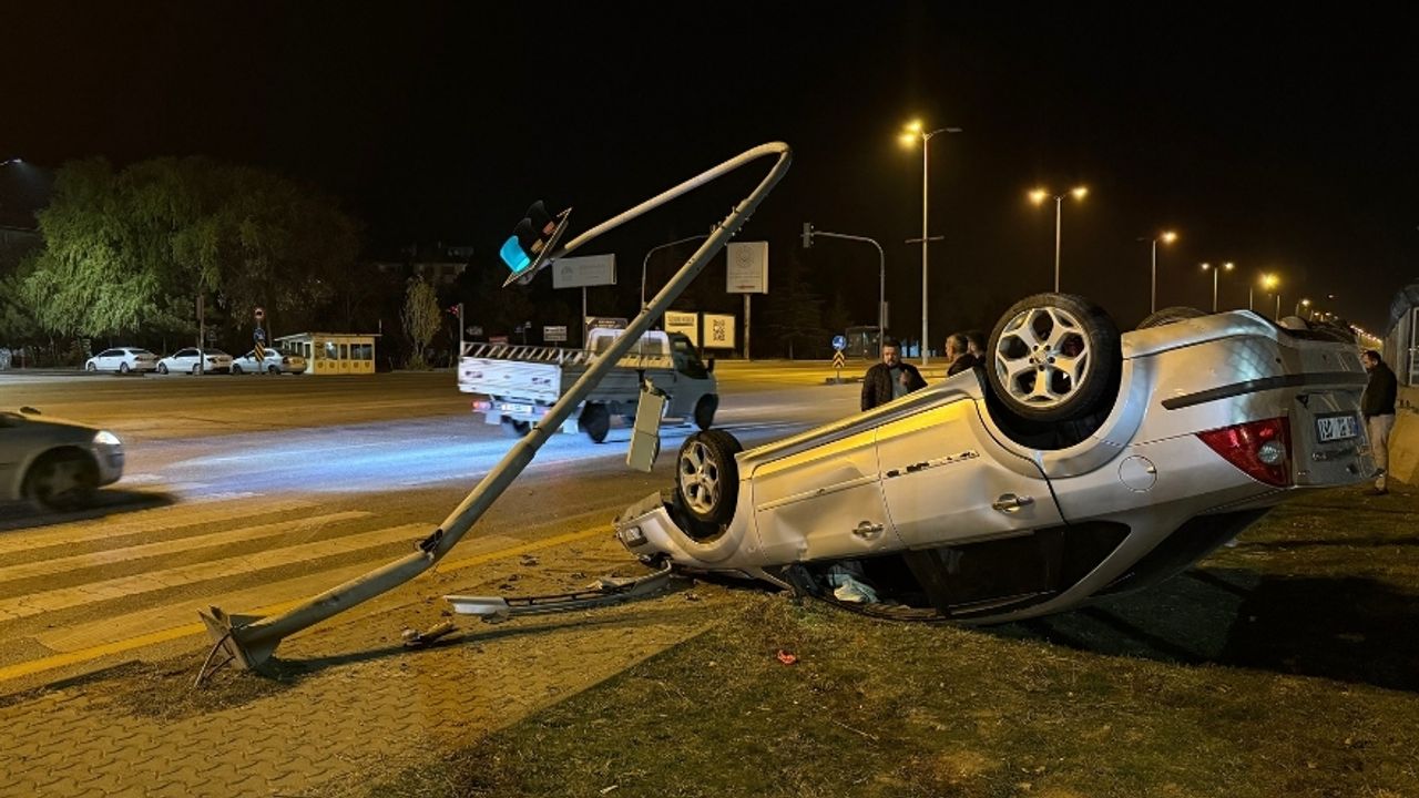 Edinilen bilgilere göre, Ü.Ö. idaresindeki 06 BZ 051 plakalı otomobil sürücüsünün kontrolünü kaybetmesiyle kavşaktaki direğe çarparak takla attı, ardından devrildi.
