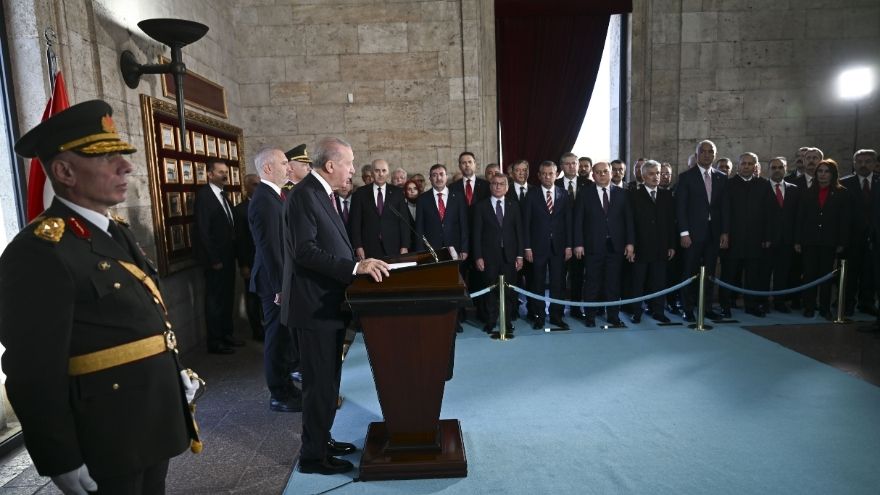 Cumhuriyet'in ilanının 102'nci yıl dönümü dolayısıyla Anıtkabir’de yapılan törende, Cumhurbaşkanı Recep Tayyip Erdoğan, Anıtkabir Özel Defteri'ni imzaladı.