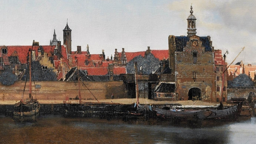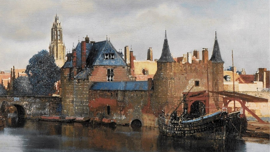 Vermeer’in ışığı kullanma biçimi her zaman kendi içinde bir hikaye taşır ve burada da aynı tavrı görürüz. Ön plan gölgede bırakılırken, şehrin merkezine doğru ilerleyen ışık izleyiciyi usulca içeri çeker.