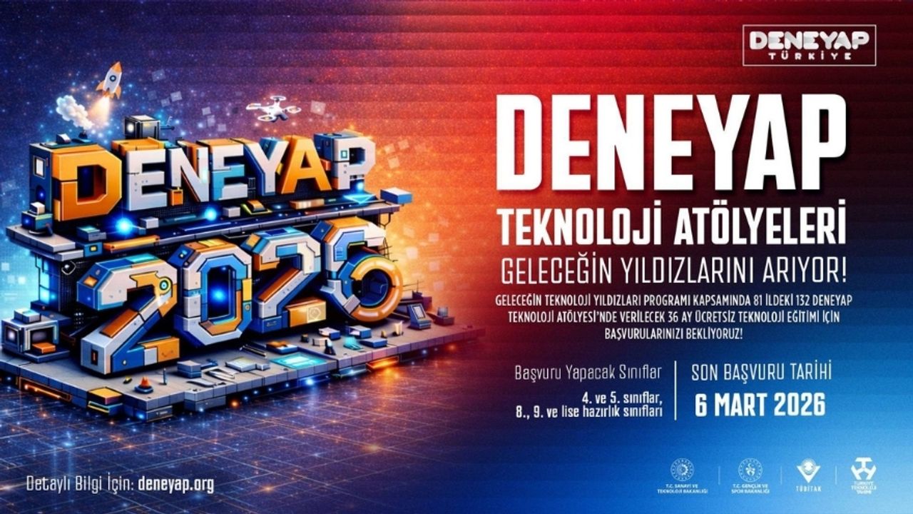 Program kapsamında, 81 ilde faaliyet gösteren 132 DENEYAP Teknoloji Atölyesi’nde öğrencilere 36 ay boyunca ücretsiz teknoloji eğitimi verilecek. Açıklamada, başvuruların 6 Mart 2026 tarihine kadar devam edeceği bildirildi.