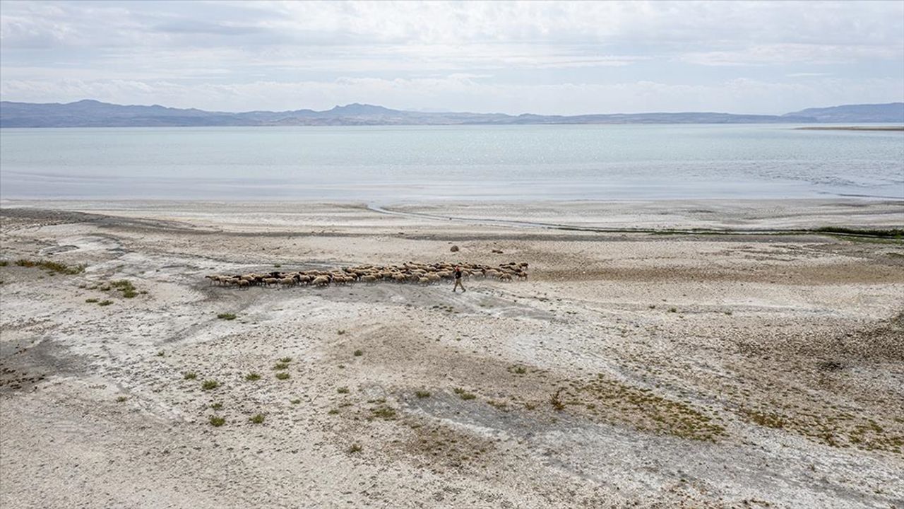 Yağışların azalması ve aşırı buharlaşma dolayısıyla önemli miktarda su kaybının yaşandığı Van Gölü'nün sığ noktalarındaki çekilme yüzlerce metreyi buluyor.