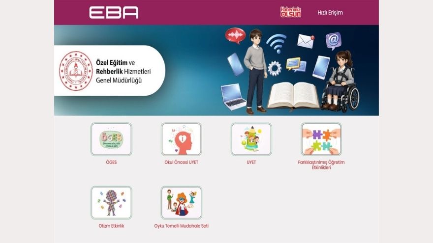 Milli Eğitim Bakanlığı'ndan yapılan yazılı açıklamaya göre, Özel Eğitim ve Rehberlik Hizmetleri Genel Müdürlüğü tarafından hayata geçirilen platformda ders kitapları, yardımcı kaynaklar, akademik destek çalışma sayfaları, yaşam becerilerine yönelik etkinlikler, özel eğitim rehberlik çalışmaları, aile eğitimi içerikleri ile ölçme ve değerlendirme araçları yer alıyor.