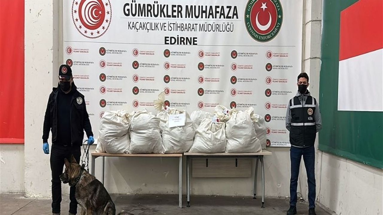 Edirne’de Bulgaristan’a açılan Kapıkule Sınır Kapısı’nda yurda giriş yapmak üzere gelen tırın dorsesinde narkotik köpeği ‘Uzay’ ile arama gerçekleştirildi. Tırda yapılan aramada çuvallar içerisinde 113 kilo 664 gram esrar ele geçirilirken 1 şüpheli de yakalanarak gözaltına alındı.