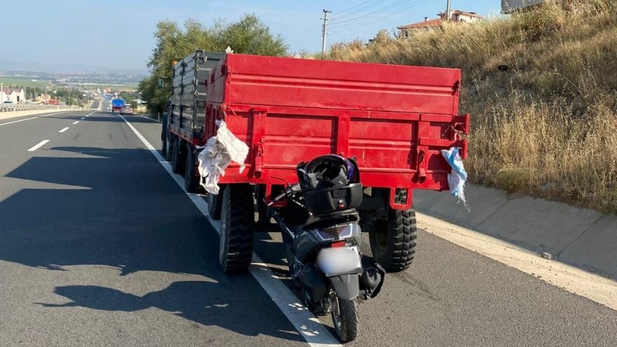 Motosiklet Traktör Römorkuna Arkadan Çarptı