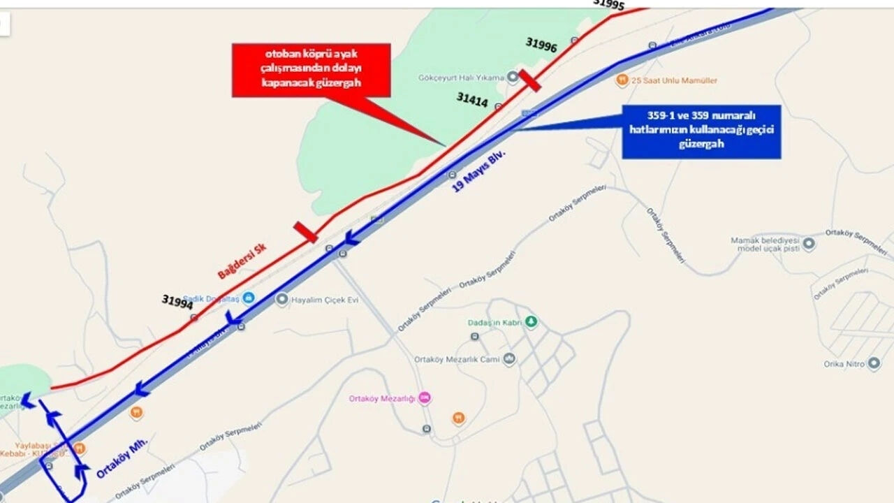 Mamak ilçesinde başlatılan otoyol köprü ayağı çalışmaları toplu ulaşımı etkiledi. EGO, 359 ve 359-1 numaralı hatların güzergâhında zorunlu değişikliğe gidildiğini duyurdu.