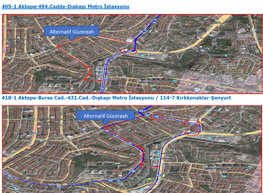 EGO ayrıca, Aktepe Hareket Noktasından yönlendirilen 405-1 ve 418-1 numaralı EGO hatlarının ve 114-7 numaralı özel halk otobüsü hattının alternatif güzergah kullanacağını açıkladı.