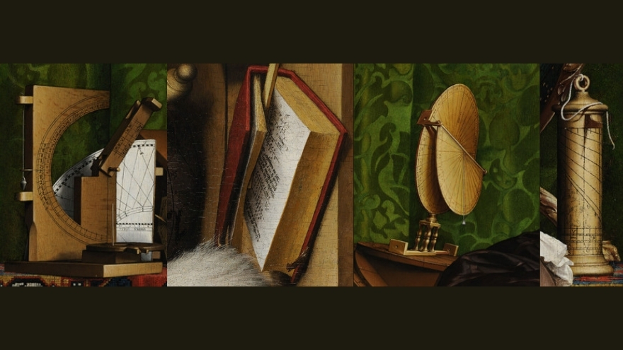 Tablonun her köşesi ayrı bir hikaye anlatıyor. Masanın üstündeki gök küresi, güneş saatleri, torquetum (ufuk, ekvator ve ekliptik olmak üzere üç koordinat kümesinde yapılan ölçümleri almak ve dönüştürmek için kullanılan bir alett) gibi bilimsel aletler, 16. yüzyılın bilgiye olan tutkusu ve merakını gözler önüne seriyor.