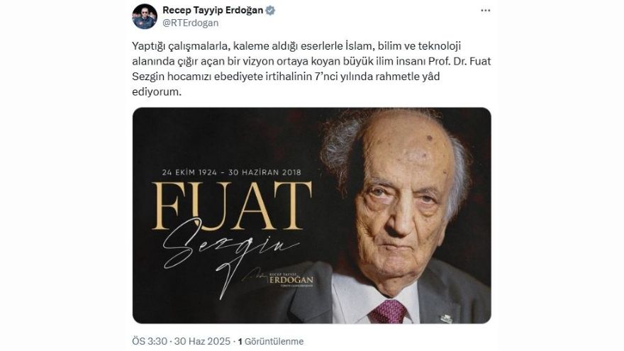 Cumhurbaşkanı Recep Tayyip Erdoğan, sosyal medya üzerinden yaptığı paylaşımda Sezgin’in İslam, bilim ve teknolojiye kattığı değerleri vurguladı.