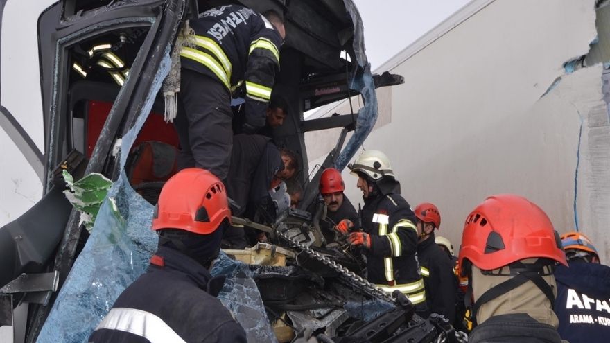 Sürücüsünün direksiyon hakimiyetini kaybettiği tırın kupası ters dönerken bu esnada aynı istikamette ilerleyen İstanbul plakalı yolcu otobüsü duramayıp ters dönen tırın kupasına çarptı.