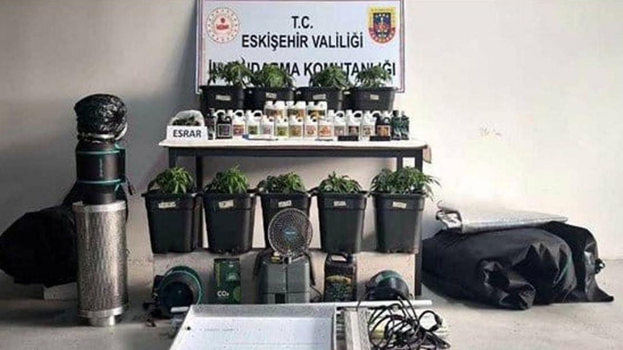 Odunpazarı ilçesinde bulunan evlerde yapılan aramalarda hem yetiştirme sistemi hem de çeşitli maddeler ele geçirildi. Gözaltına alınan üç şüphelinin sorgusu sürüyor.