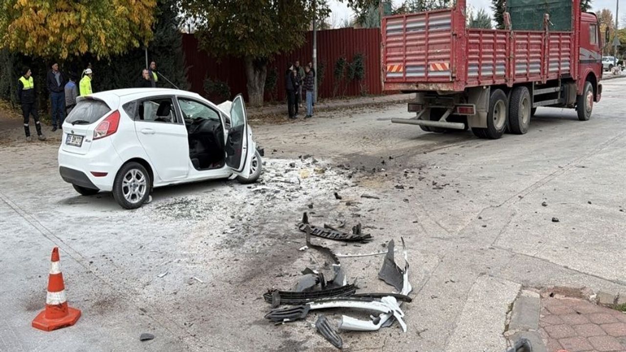 Kazada Kar Sokak’ta seyir halinde olan Ş.G.K. idaresindeki Eskişehir plakalı otomobil, sürücüsünün direksiyon hakimiyetini yitirmesi sonucu Çamlık Sokak’a dönüş yapan L.Ç. (53) yönetimindeki Erzurum plakalı kamyona yandan çarptı.