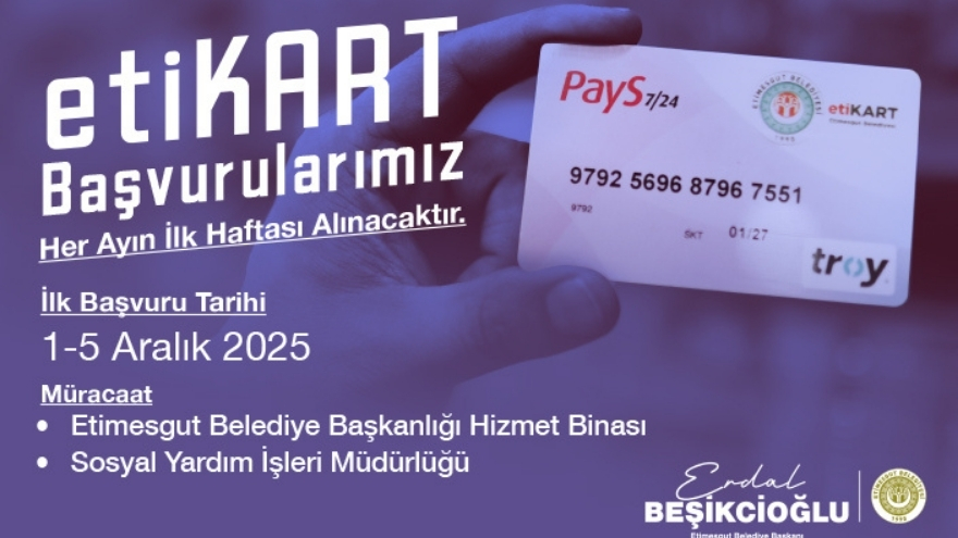 Belediyeden yapılan açıklamaya göre, etiKART başvuruları 1–5 Aralık 2025 tarihleri arasında alınacak. İlk kez başvuru yapacak vatandaşlar için geçerli olacak bu başvuru dönemi, belediyenin sosyal yardımlaşmayı güçlendirme hedefinin bir parçası olarak planlanıyor.
