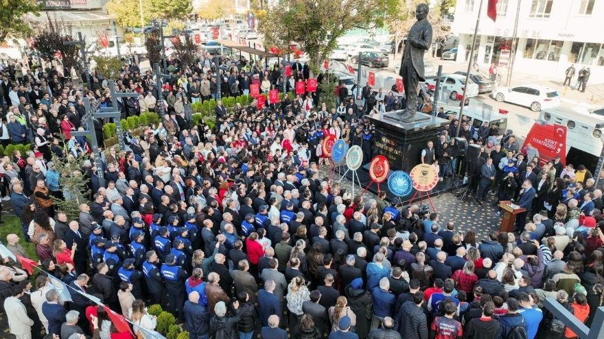 Bu kapsamda, belediye tarafından ilçeye kazandırılan ve vatandaşların uğrak noktası haline gelen Cumhuriyet Meydanı’nda, Ulu Önder Mustafa Kemal Atatürk’ün büstüne çelenk sunma ve saygı töreni düzenlendi.