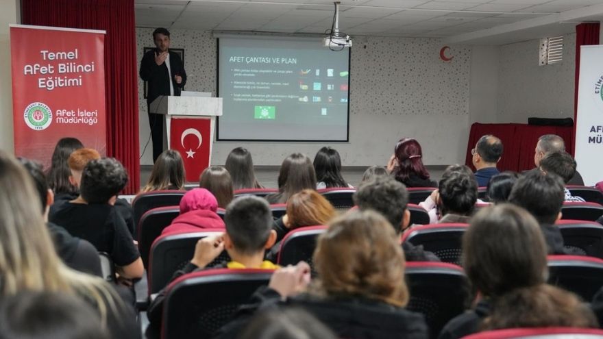 Etimesgut Belediyesi, ilçe genelinde doğal afetlerle mücadele kapsamında vatandaşları bilinçlendirme çalışmalarını sürdürüyor. Bu kapsamda İlçe Milli Eğitim Müdürlüğü arasında ‘Okullarda Afet Bilinci Eğitimi İş Protokolü’ imzalanarak Mehmetçik Anadolu Lisesi’nde ilk eğitim gerçekleştirildi.