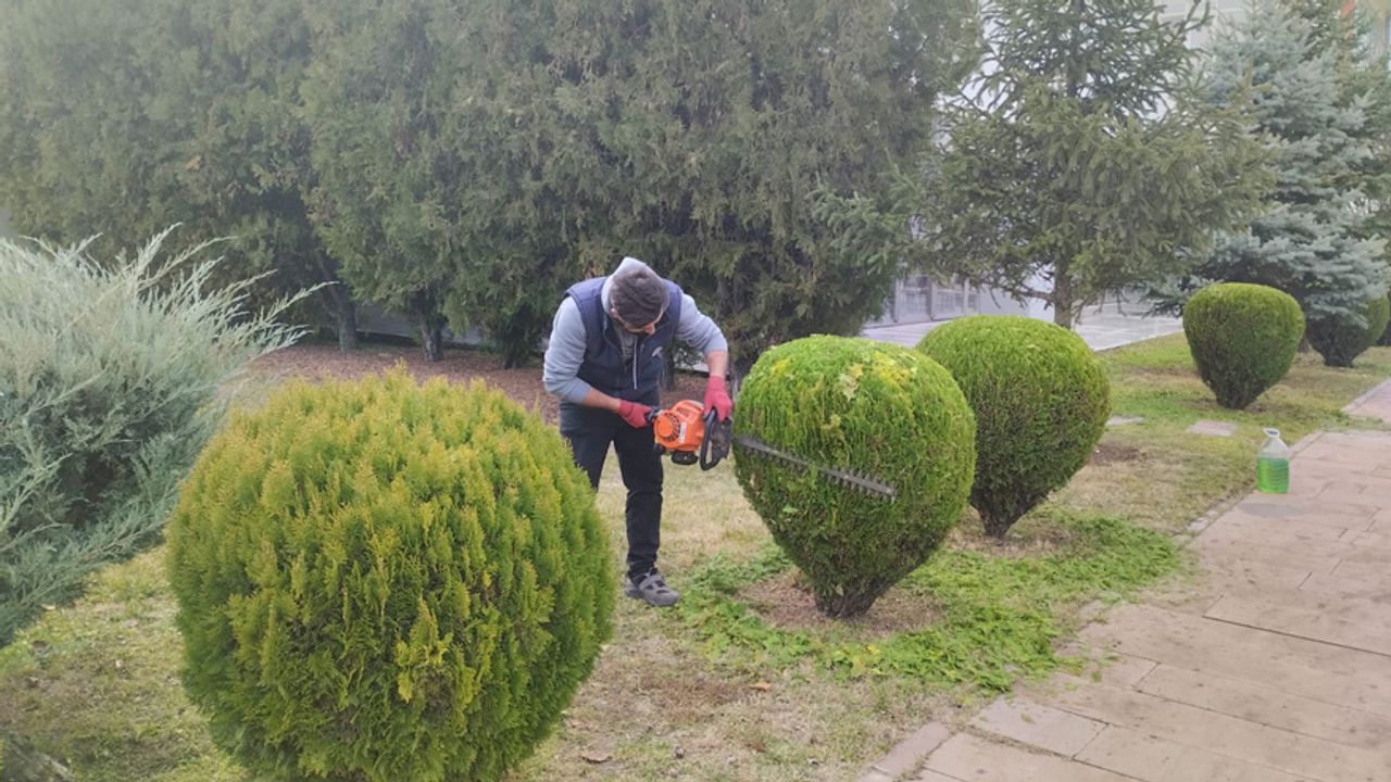 Park ve Bahçeler Müdürlüğü ekipleri, çim biçme, budama, kurumuş yaprakların ve atıkların temizlenmesi gibi rutin çalışmaları titizlikle yürütüyor.