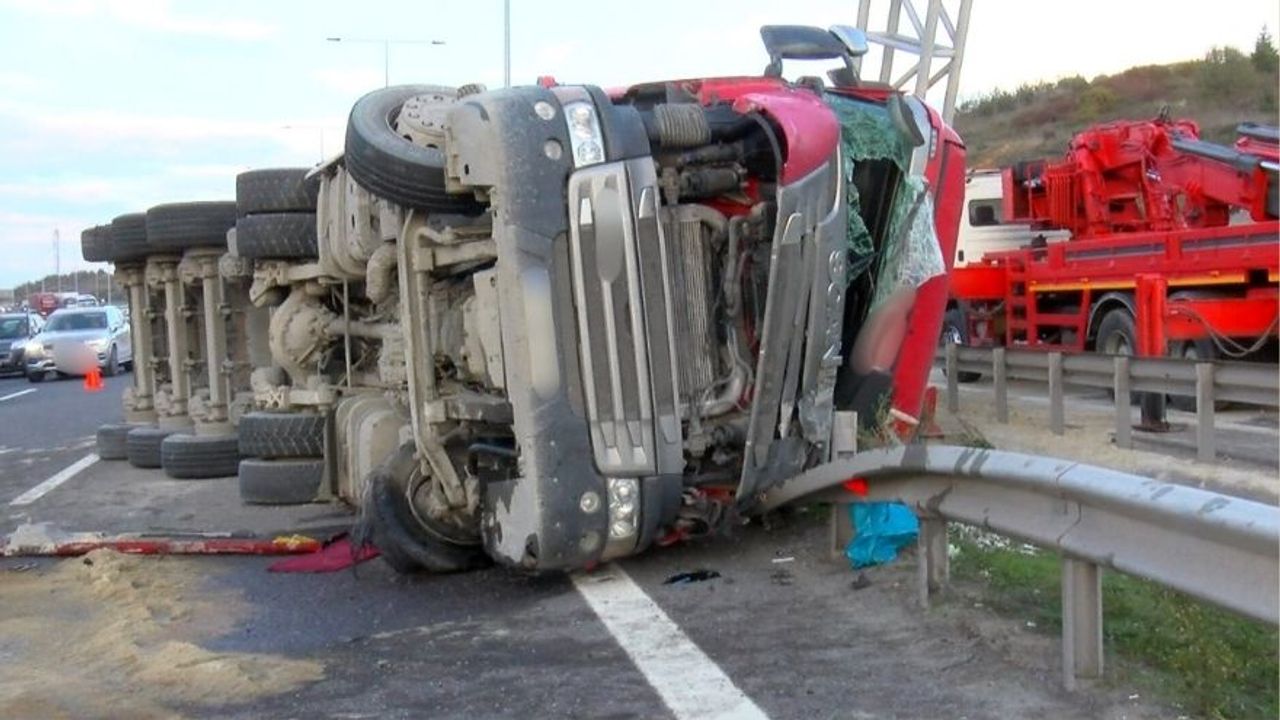 Kaza, saat 15:30 sıralarında Kuzey Marmara Otoyolu’nun Başakşehir istikametinde meydana geldi. 49 plakalı kum yüklü hafriyat kamyonunun sağ ön lastiği seyir halindeyken patladı. Direksiyon hakimiyetini kaybeden sürücü M.K., aracın yan yatmasıyla bariyerlere çarptı.