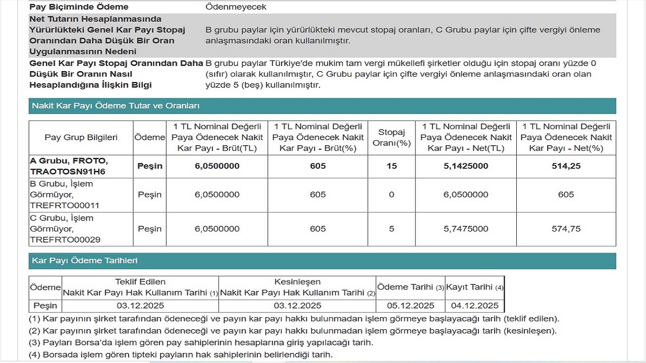FROTO Hisse Ne Kadar Temettü Verecek?