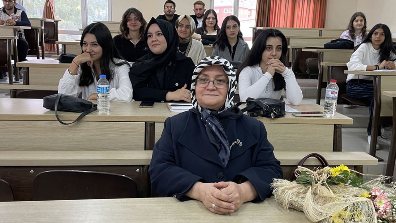 Üniversiteye kaydını yaptıran Kayhan, eğitimin ilk gününde torunu yaşındaki öğrencilerle aynı sırayı paylaştı.