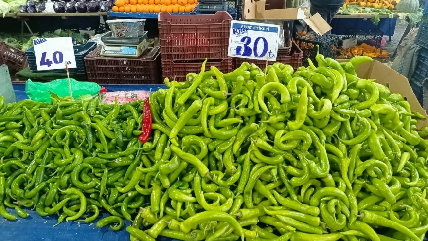 Bir önceki hafta 50 liradan satışa konulan yeşil biber, bu hafta ürün bolluğuna göre 30 liraya kadar düşen seçeneklerle tezgahta yerini alıyor.