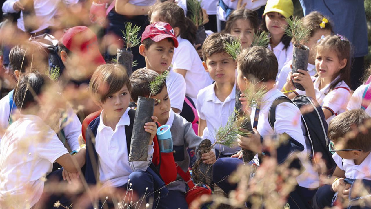 Cumhuriyet'in 100. yıl kutlamaları kapsamında Başkentin küçük ve büyük öğrencileri "100. Yılda Her Sınıf 100 Ağaç Dikiyor" etkinliğinde binlerce fidanı Atatürk Orman Çiftliği'ndeki toprakla buluşturdu.