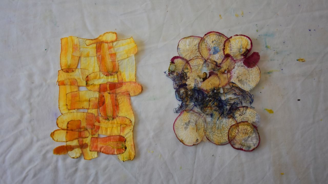 "Örneğin, kırmızı lahananın geniş kök kısımları daha faydalı oluyor. Havuç, salatalık, kereviz gibi sebzelerden de yararlanıyorum. Nişasta ve şeker barındıran ürünler kağıt yapımına uygun değil. Sebzeleri ince şekilde doğruyorum ve bir süre sıcak suda bekletiyorum. Ardından yan yana ve üst üste gelecek şekilde birleştiriyorum. Daha sonra baskı altında kurutuyoruz ve kağıt hazır oluyor. Yaptıklarımı sanatsal çalışmalarımda değerlendiriyorum. Arkadaşlarıma hediyeler yapıyorum."