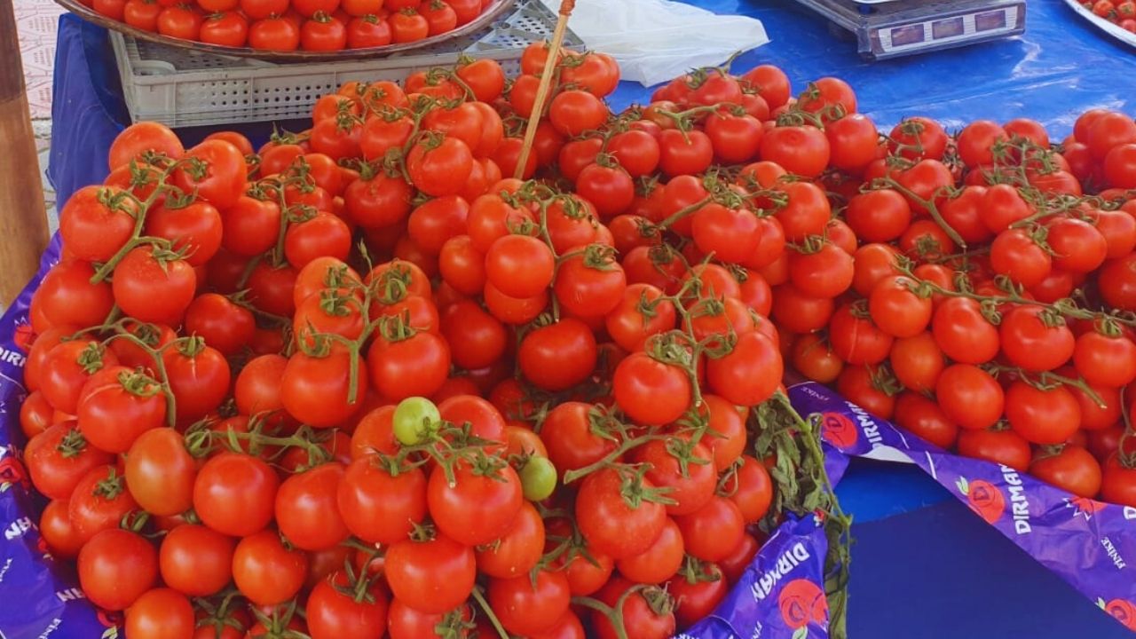 Her mevsimin vazgeçilmezi olan salkım domatesler, tazeliği ve parlak kırmızı rengiyle pazarın en çok ilgi gören ürünleri arasında yer alıyor. Kilo fiyatı ise 80 TL'den alıcı buluyor.