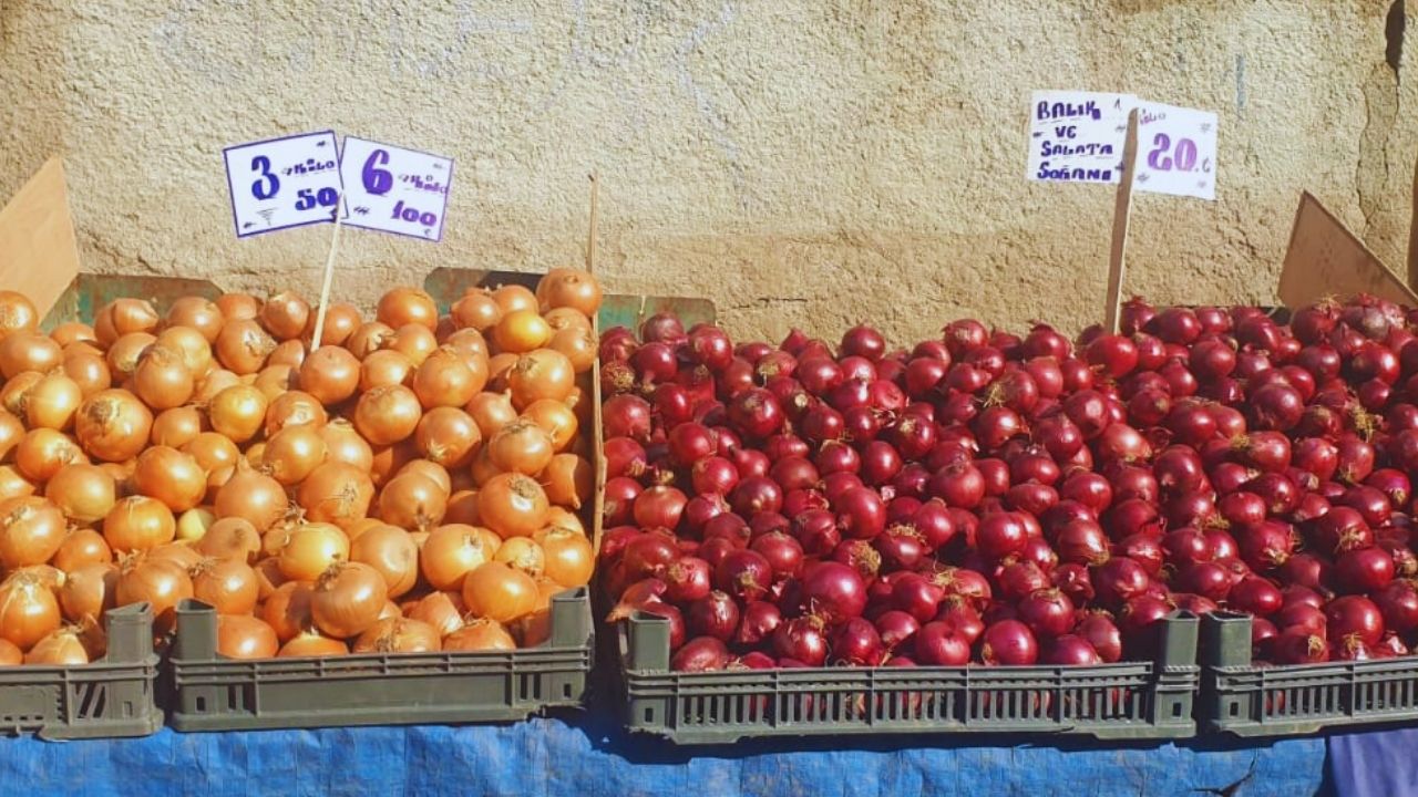 Yemeklerin temel malzemesi olan kuru soğan, kışlık ihtiyaçlarını karşılamak isteyen vatandaşlar için tezgahlarda yer alırken 3 kilosu 50 liradan satışa sunuluyor.