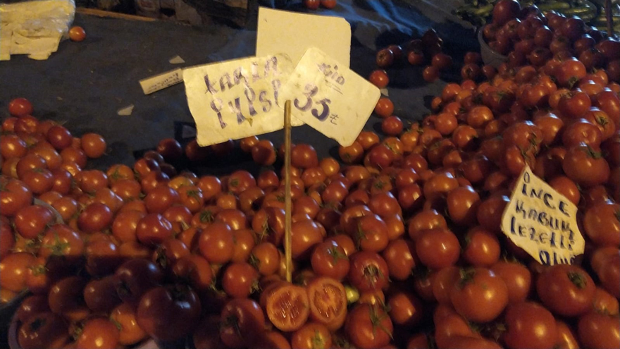 Sofraların ve salataların vazgeçilmez ürünü domates fiyatlarında da düşüş yaşanmadı. Gün içinde ne ise akşam saatlerinde de aynı fiyattan satıldı. Fiyatlar 35 lira ile 65 lira arasında cinsine göre değişti.