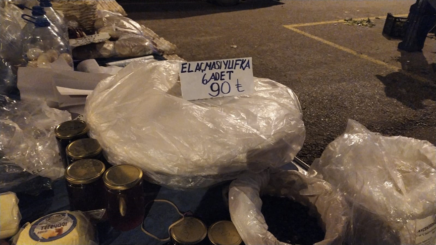 Pazarda el açması yufkanın 1 kilogram gelen 6’lı paketi 90 liradan satılırken, tek yufkanın fiyatı ise 15 lira oldu.