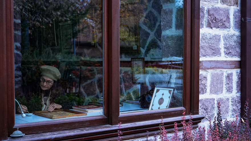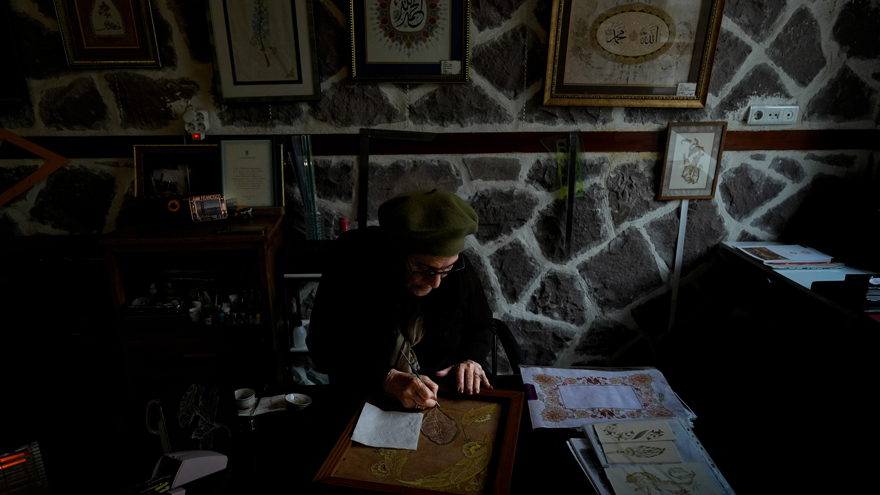 Sanatçı, burada üretim yapmayı ve tezhip sanatını yaşatmayı sürdürüyor.