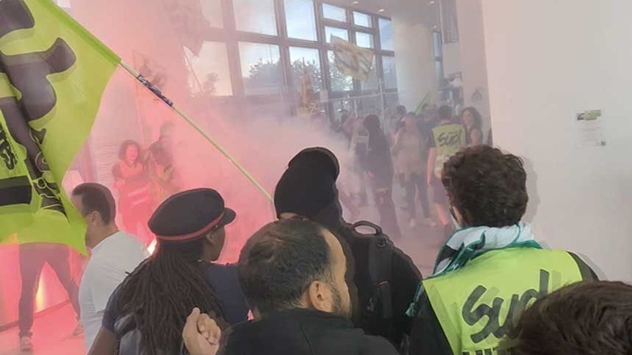 Fransa'nın başkenti Paris'te demiryolu çalışanları, Ekolojik Dönüşüm Bakanlığının La Defense Mahallesi'ndeki binasını bastı ve içerde meşaleler yakarak eylem gerçekleştirdi.