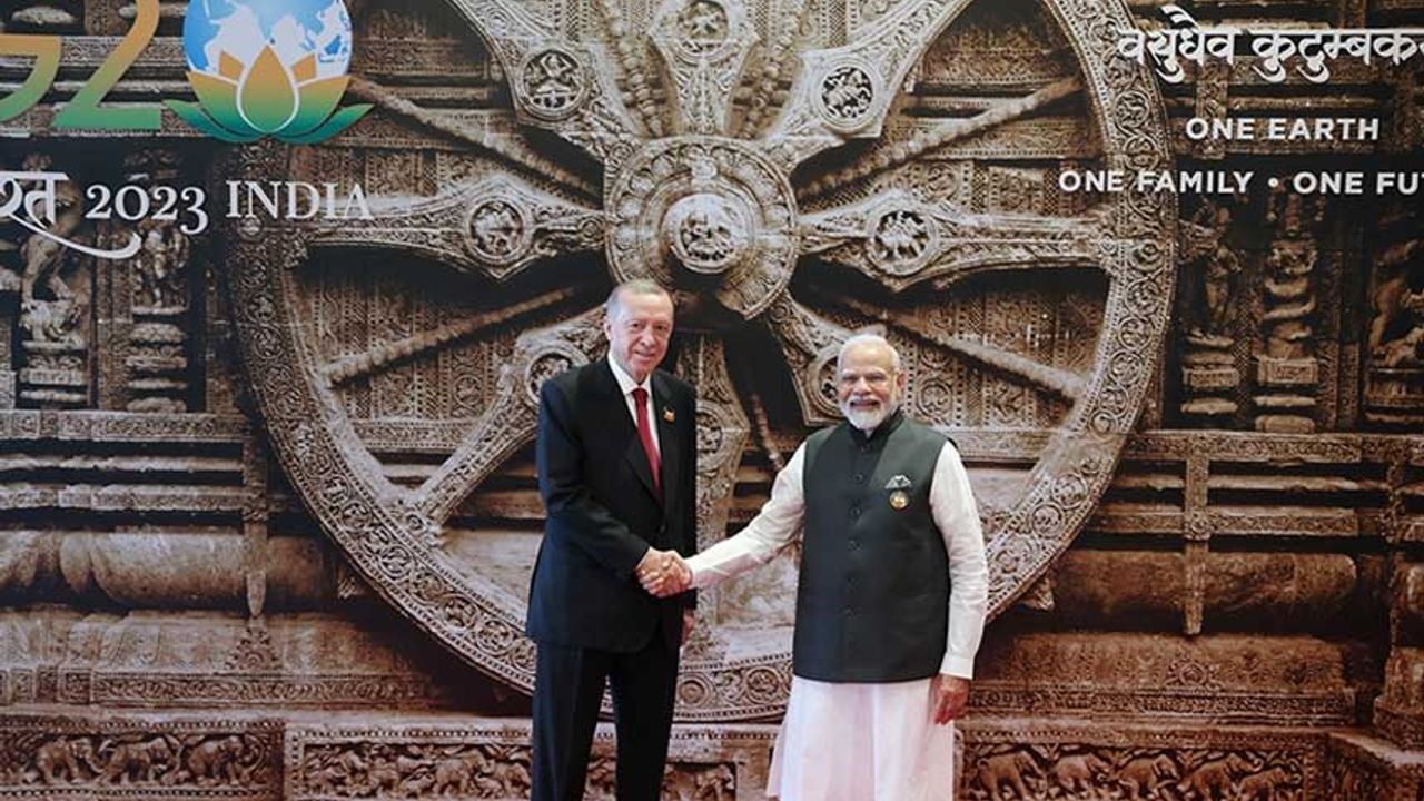 Hindistan Başbakanı Narendra Modi, Bharat Mandapam Uluslararası Fuar ve Kongre Merkezi'ndeki törende zirveye katılan liderleri tek tek karşılayarak fotoğraf çektirdi.