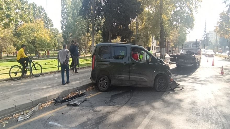 Kazada A.E. idaresindeki Gaziantep plakalı hafif ticari araç, sürücünün direksiyon hakimiyeti yitirmesi sonucu önce refüje sonra elektrik direğine çarptı.
