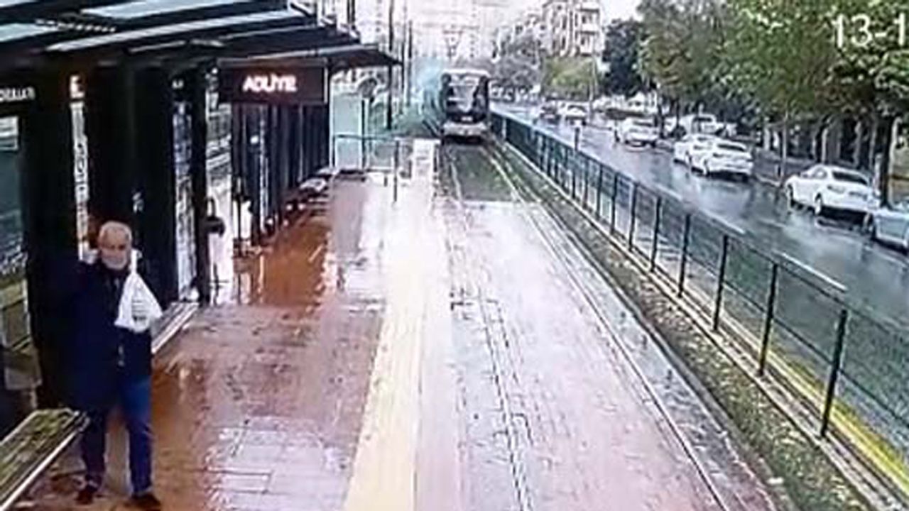 Olay anına ait güvenlik kamerası görüntüleri de paylaşıldı. Görüntülerde tramvayın duraktan yolcu aldıktan sonra hareket ettiği ve kısa süre sonra dumanların yükseldiği görüldü.