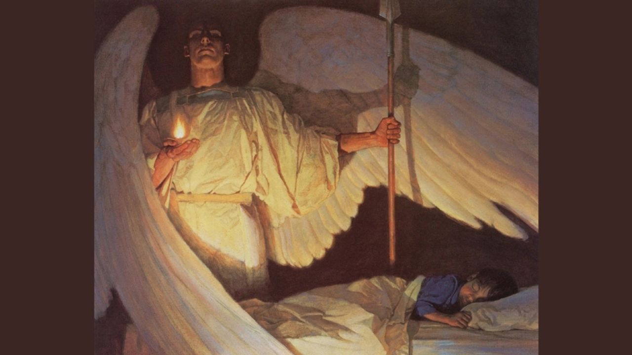 Sanatçı, karanlık bir gecenin içinde uyuyan bir çocuğu izleyen meleği öyle bir ışık ve kompozisyonla resmediyor ki, tablo yalnızca bir sanat eseri değil, görsel bir sığınak hissi uyandırıyor.