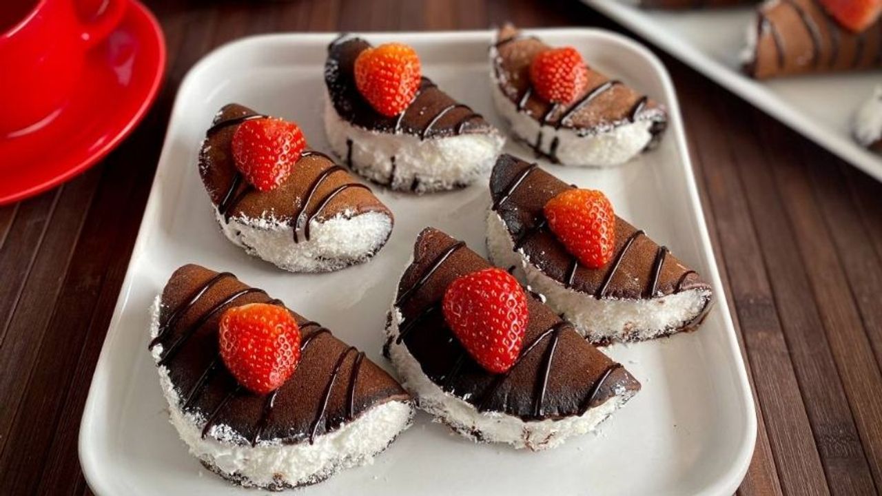 · Kreplerin ortasına 1-2 yemek kaşığı krema koyun.