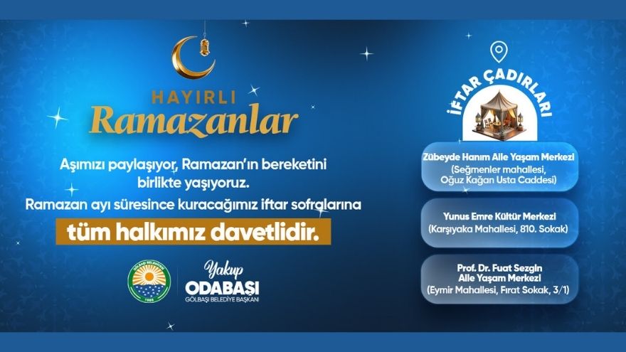 Diğer yandan Gölbaşı Belediyesi, Ramazan ayı süresince dayanışma ve paylaşma kültürünü güçlendirmek amacıyla ilçe genelinde iftar sofraları da kuracak.